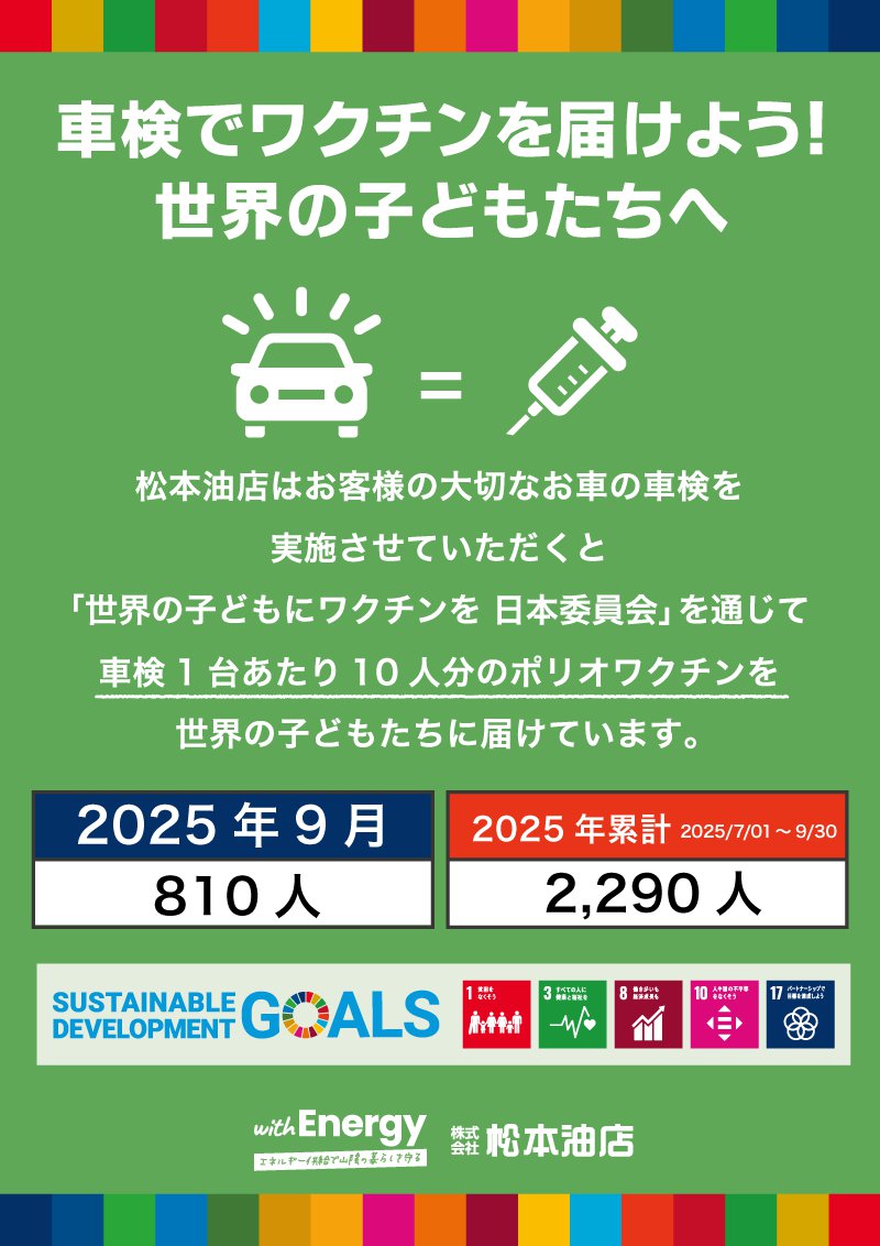 松本油店では、2025年7月より、「車検でワクチンを届けよう!世界の子どもたちへ」の取り組みをスタートいたしました。